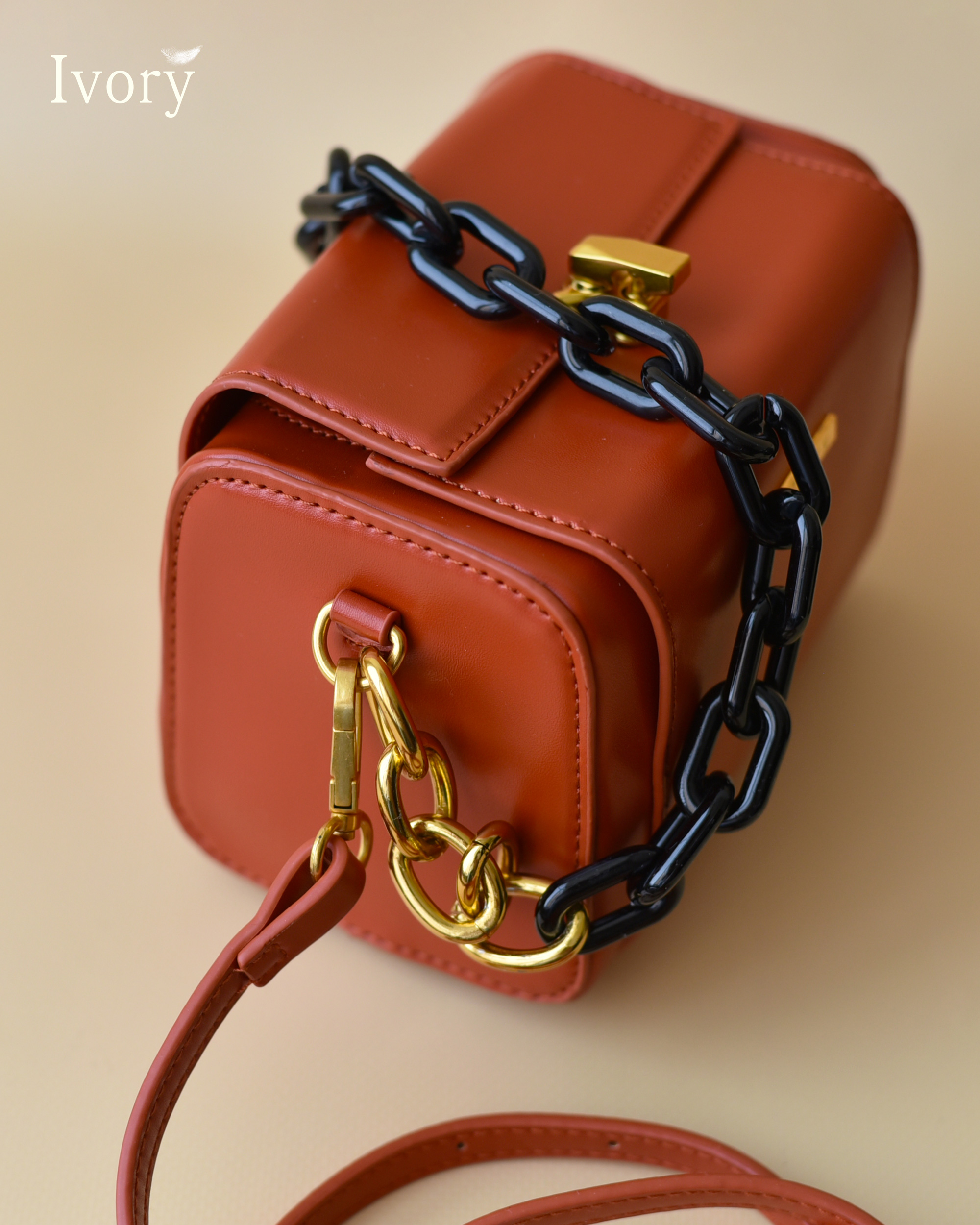 The Chain Charm Box Bag is a chic and compact accessory that combines elegance with functionality. Its unique box shape and chain details make it a standout piece, perfect for adding a touch of glamour to any outfit. The secure closure and spacious interior ensure your essentials are safely stored, while the versatile strap allows for both crossbody and shoulder wear. Available in two stylish colors, this bag is the perfect addition to your accessory collection.