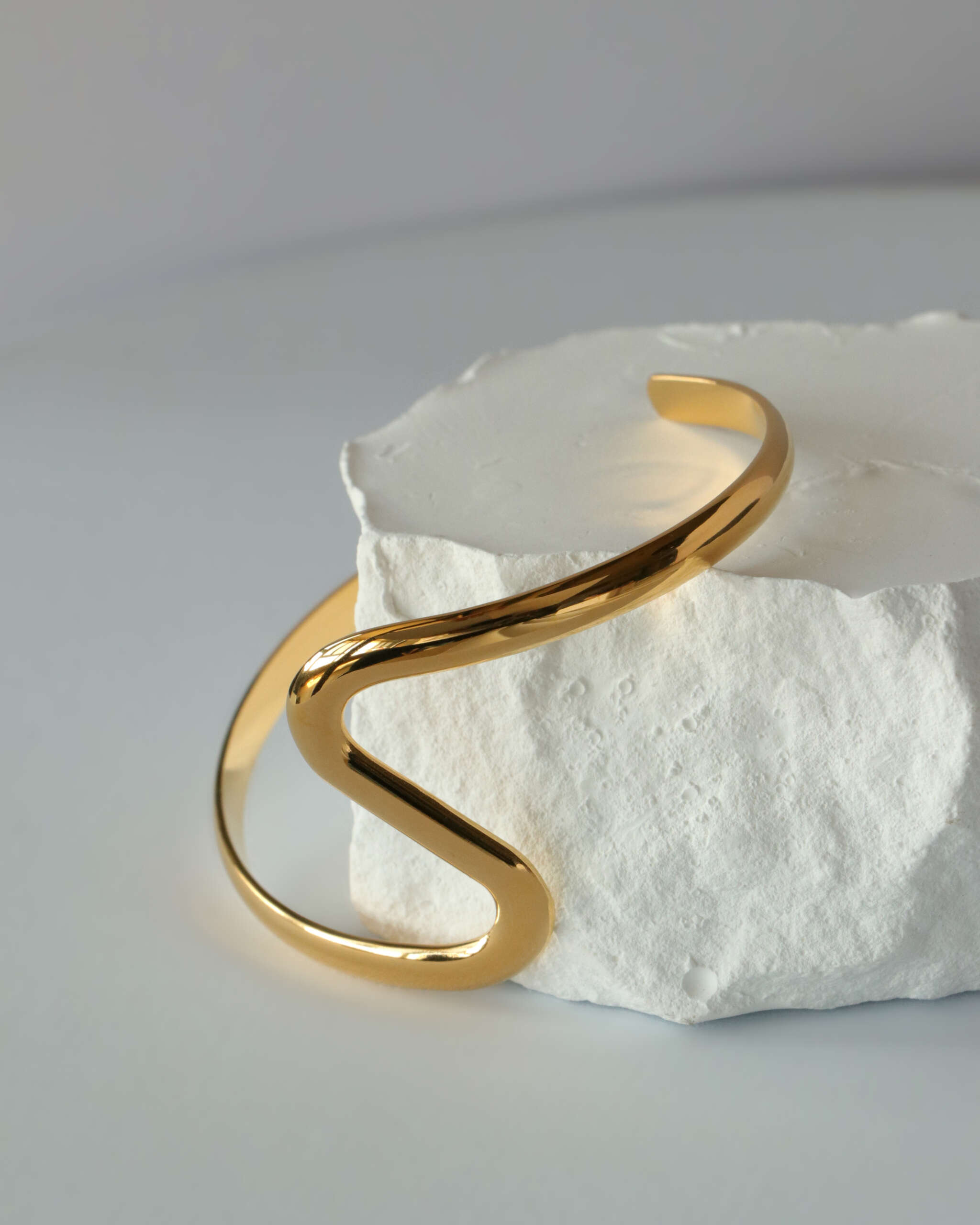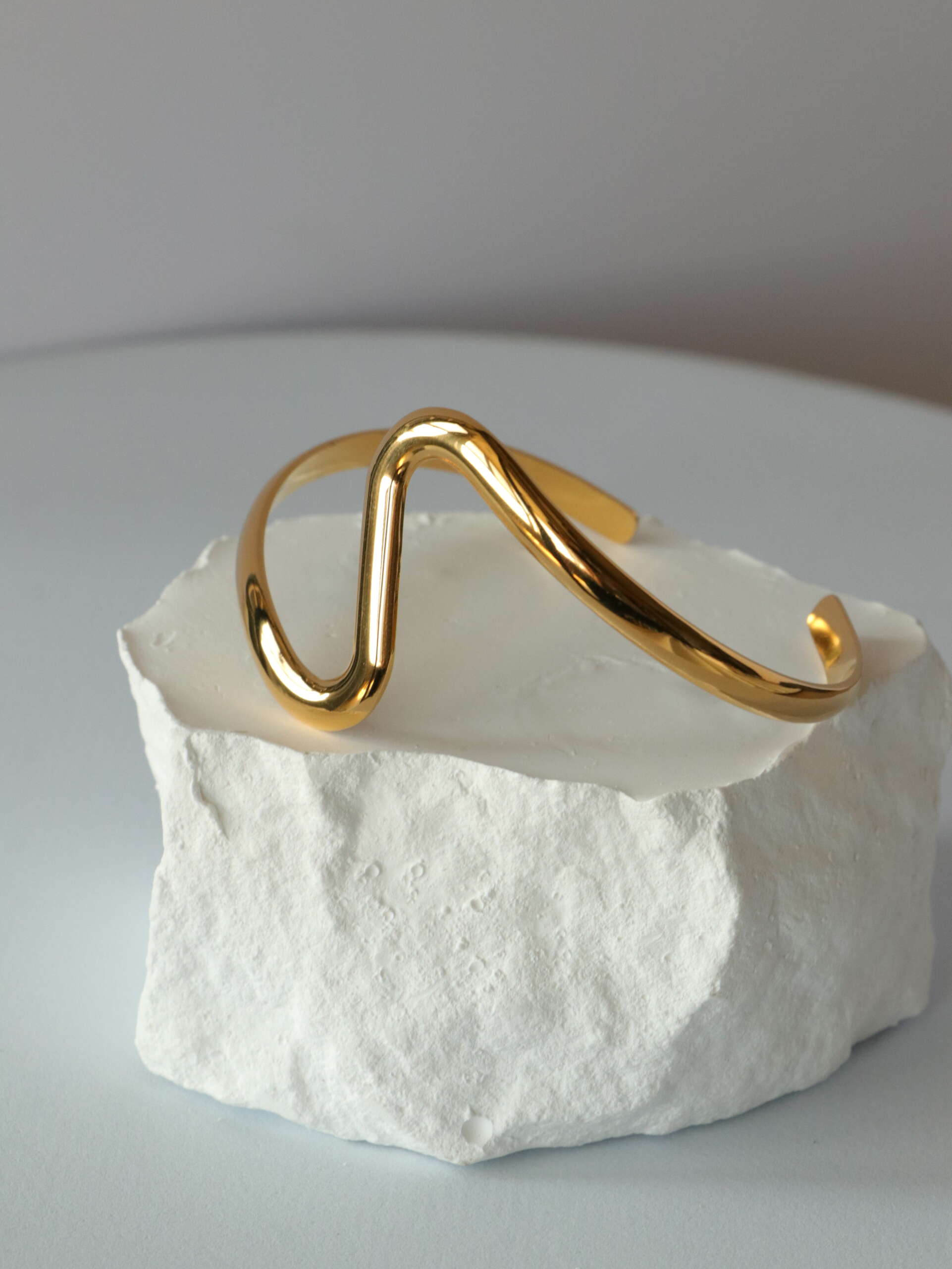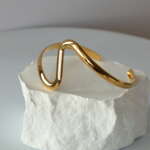 The Minimal Wave Cuff is a refined accessory that embodies modern elegance. With its smooth gold-tone finish and fluid, wave-like design, this bracelet adds a subtle yet striking touch to any outfit. Its open-ended structure ensures a comfortable fit while making it easy to wear for any occasion. Perfect for minimalist styling or layering with other pieces, the Minimal Wave Cuff is a timeless addition to your jewelry collection.