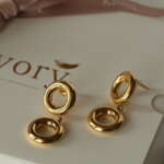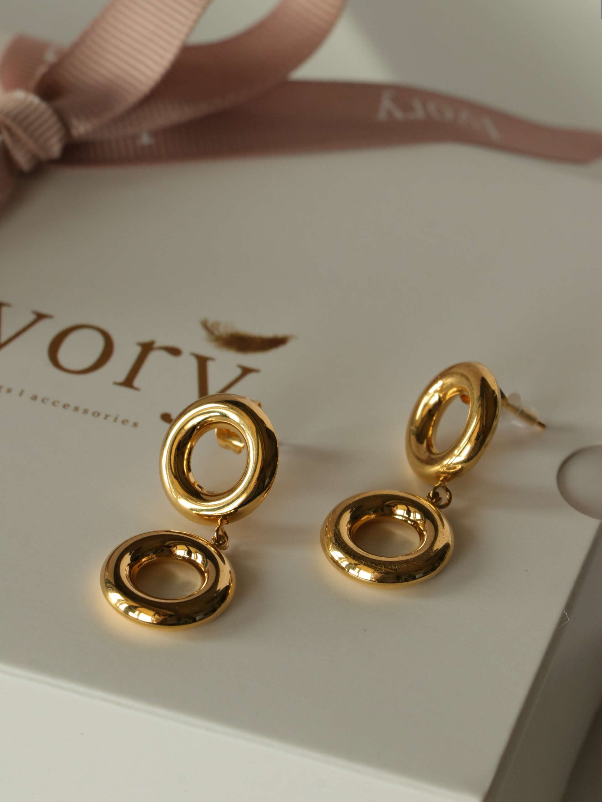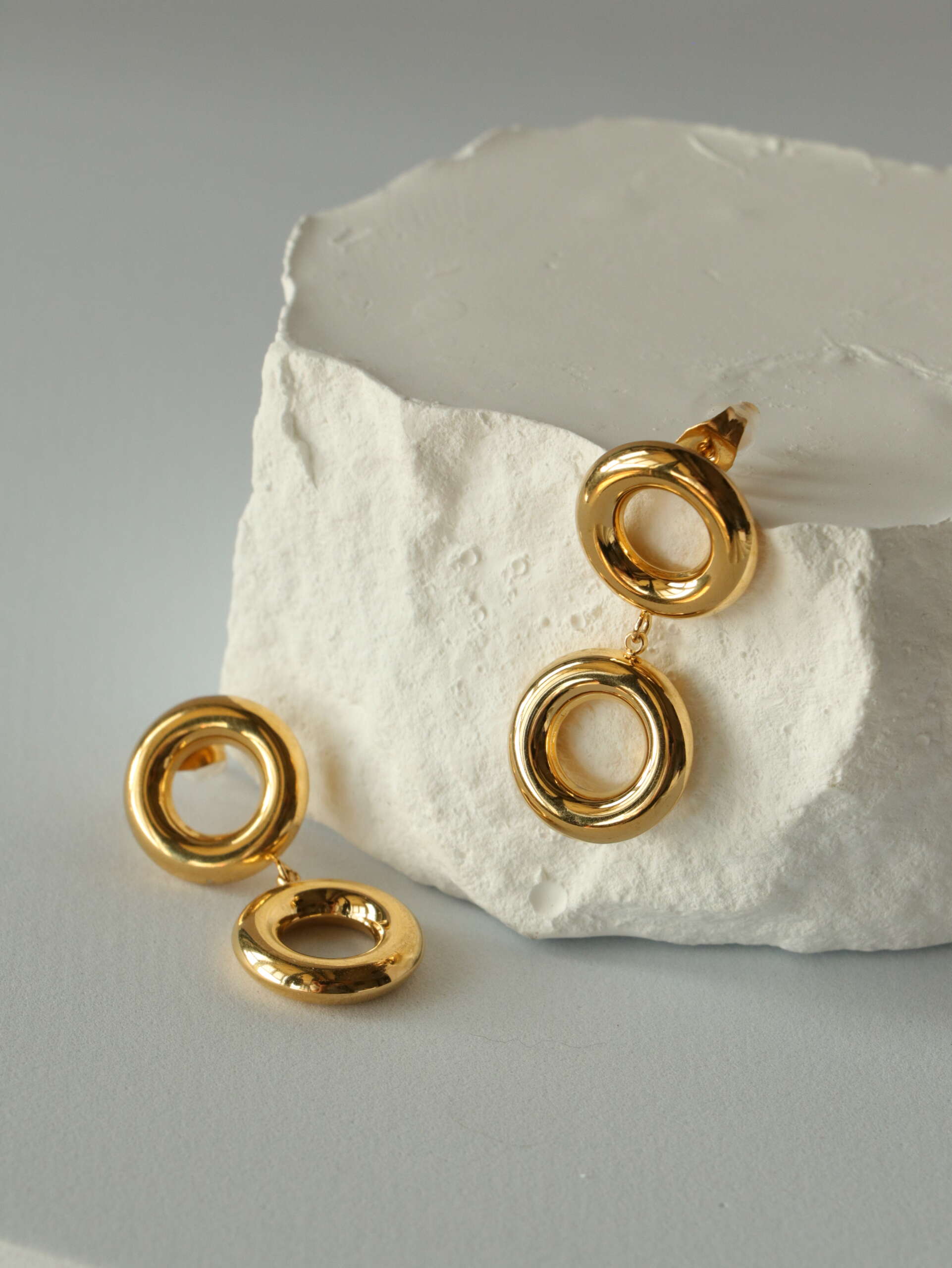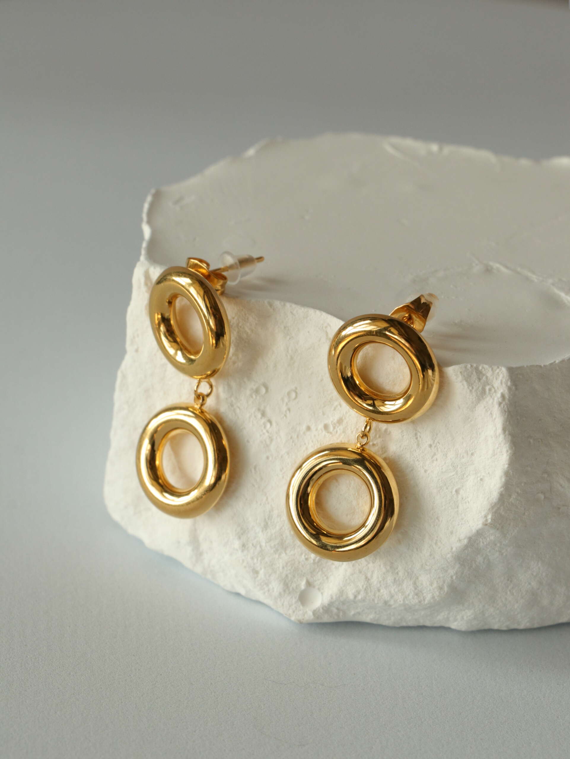 The Radiant Circle Drop Earrings embody modern elegance and timeless sophistication. These statement pieces feature a double-circle design with a luxurious polished finish that catches the light beautifully. Perfect for formal occasions or adding a touch of glamour to your daily wear, these earrings exude confidence and style. Lightweight and versatile, they complement any outfit effortlessly, making them a must-have accessory for every jewelry collection.