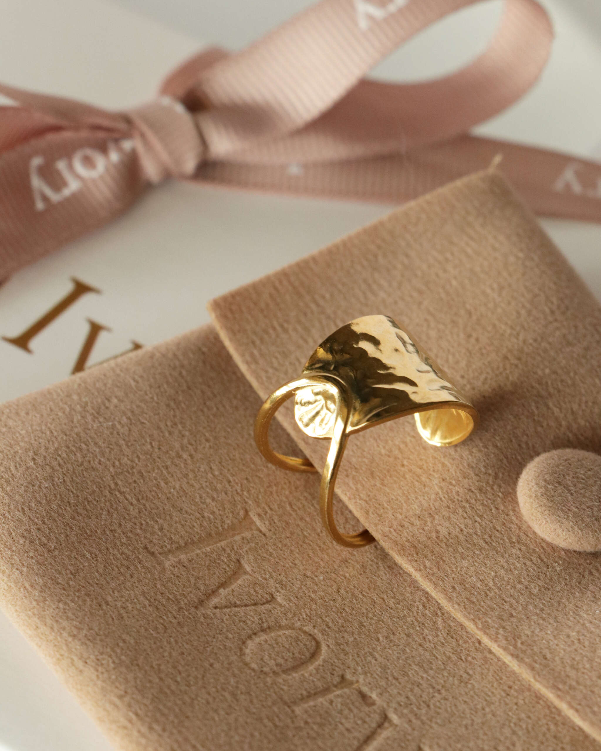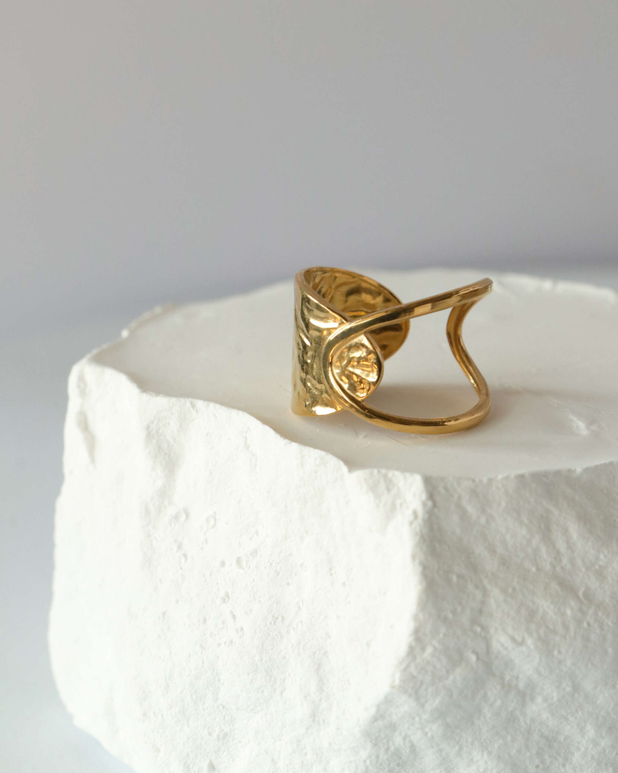 The Radiant Crescent Ring is a statement of bold elegance and timeless beauty. Featuring a unique crescent-shaped design with a hammered texture, this ring is an artful blend of sophistication and modernity. Its radiant gold finish catches the light with every movement, making it the perfect accessory to elevate any outfit. Comfortable to wear and designed for versatility, the Radiant Crescent Ring effortlessly transitions from day to evening wear.